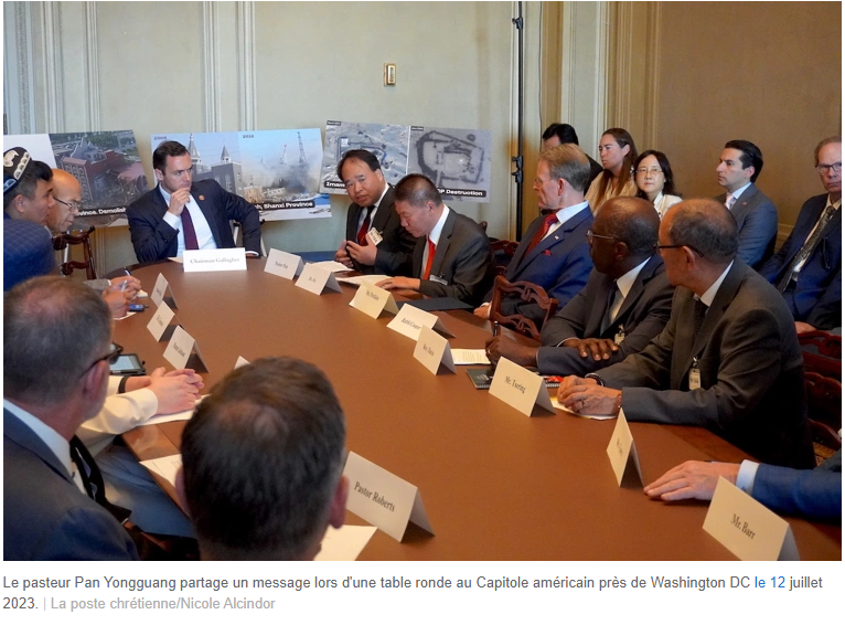 Le pasteur Pan Yongguang de l'  église Mayflower , dont les membres ont fui vers la Corée du Sud en 2019 après avoir été menacés et interrogés par la police chinoise, s'est exprimé mercredi devant le Capitole américain aux côtés du fondateur de ChinaAid, Bob Fu, avant d'assister à un événement interconfessionnel présidé par le Comité spécial sur le parti communiste chinois. Président du parti Mike Gallagher, R-Wis.