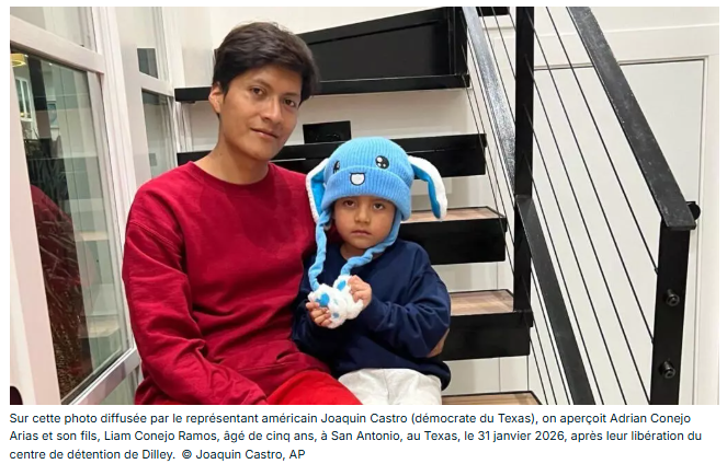 Arrêté il y a une dizaine de jours par la police de l'immigration à Minneapolis, Liam Conejo Ramos, le garçonnet dont la photo, bonnet bleu sur la tête, avait fait le tour du monde, est de retour chez lui dans le Minnesota après avoir été libéré samedi, a annoncé dimanche un parlementaire.