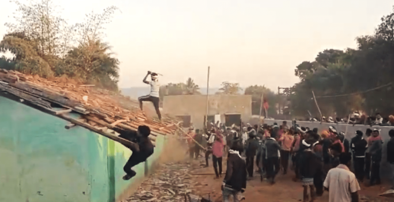 Des villageois tribaux attaquent la maison et l'église de Rajman Salam dans le village de Bedetevda, dans l'État de Chhattisgarh, en Inde, le 18 décembre 2025. (Capture d'écran de Morning Star News).